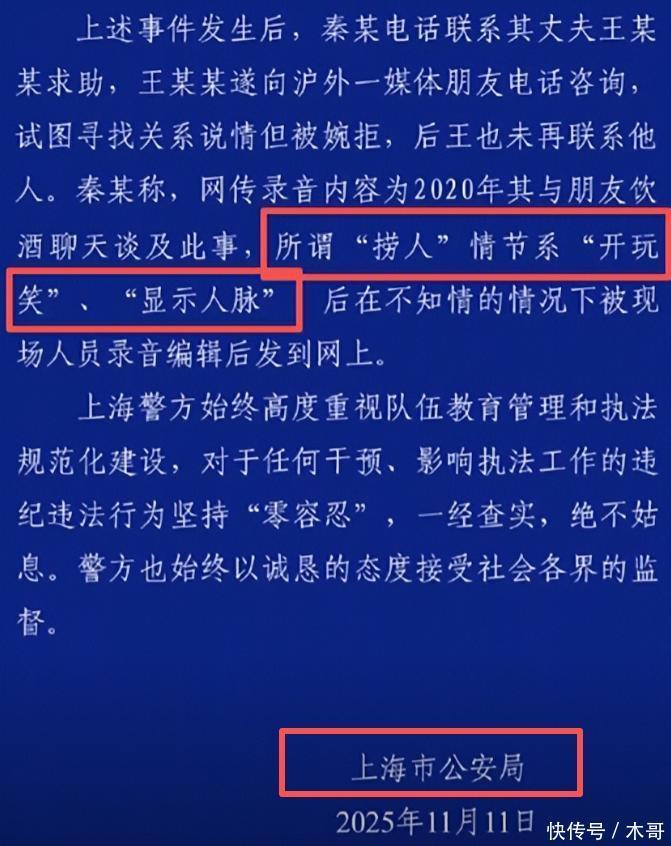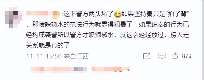 因为录音中秦雯的那句“打警察”实在是太夸张了,并且被抓进局子之后“分分钟”找人给她“捞了出去”。